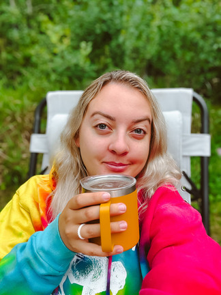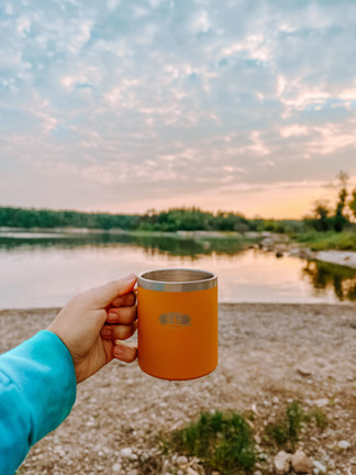 Every time I go out camping or adventuring, I truly commit to trying to wake up for the sun rise. If anyone knows me, you know what a difficult effort that is. I'm a girl who loves her sleep! But on this morning, I woke up in the early hour with the help of some cozy clothes and caffeine. I'm so glad that I did. I'm all about cozy vibes, stunning sights, and coffee views. Call it basic, but it completes me.