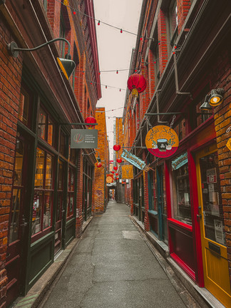 (L) Your Biggest Fan This photo was snapped during my first visit to FanTan Alley in Victoria, British Columbia. The unique architecture and urban landscape, tight corridors, wet stone and gloomy sky had me feeling in another world. A Harry Potter world, perhaps. We were transported to the Chinese Cultural district of the area. The pops of colour and long focal point draws your eye into the distance.